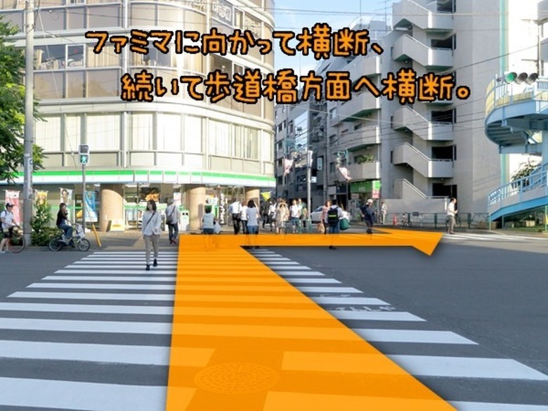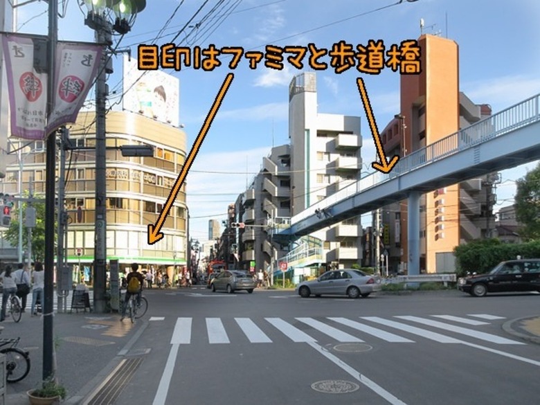 ↑ここが井ノ頭通り交差点。歩道橋を渡ってもいいですが、横断歩道のほうが楽です。