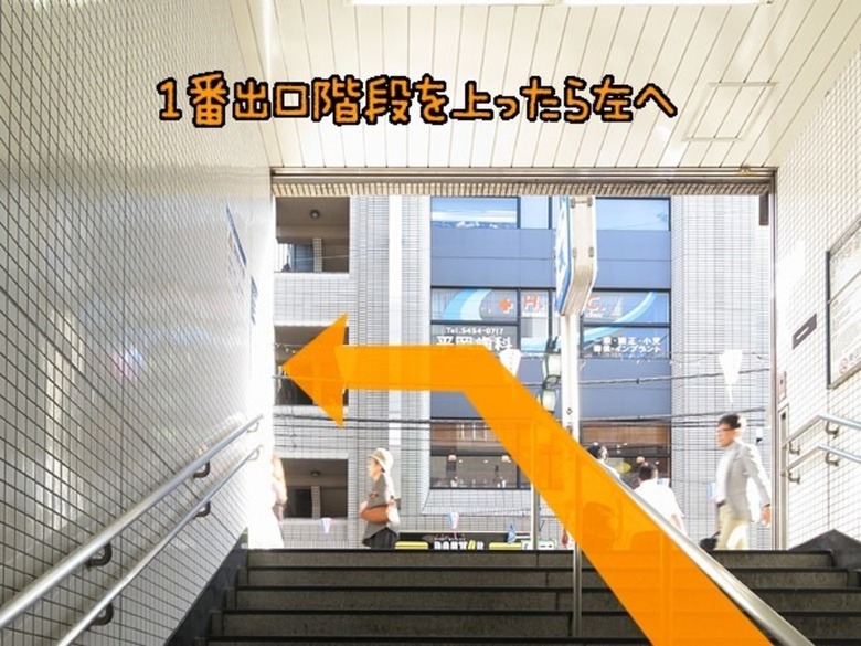 ↑改札を出て1番出口地上への階段を上ったら、左に行ってください。