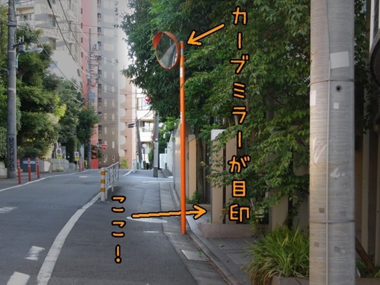 ↑住宅街の風情になって「あれ、まだかな?」と思ったら、そろそろです。目印はこのカーブミラー。この向こう側がぷろぺらのオフィスです!
