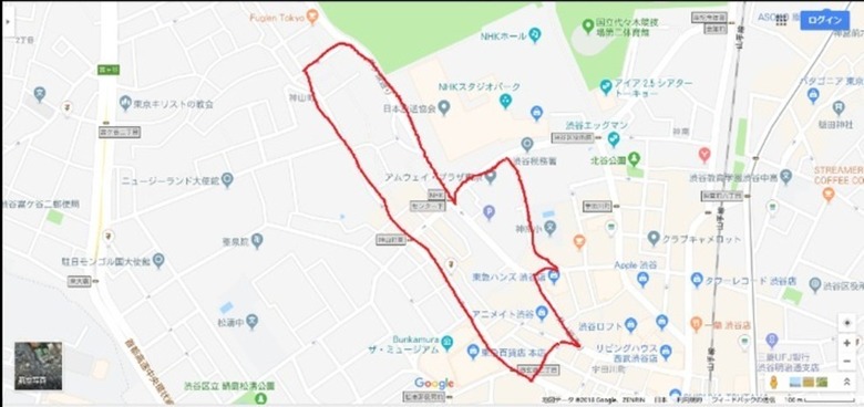 渋谷東急本店から井の頭通りにかけた、神山町/宇田川町/富ヶ谷付近を指します。