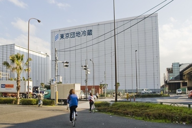 【↑倉庫街を行く一行。そして墨痕鮮やか『団地冷蔵』の名前が!良い名前!団地を末永く冷蔵して保存するための倉庫ですね!(ちがいます)】
