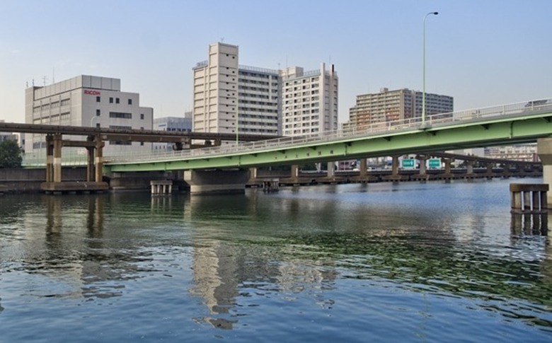首都高の横に寄り添うように水の中にちょこんと脚を降ろす。キュート。