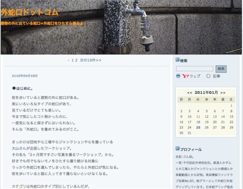 屋外にある蛇口、「外蛇口」を集めているサイト。