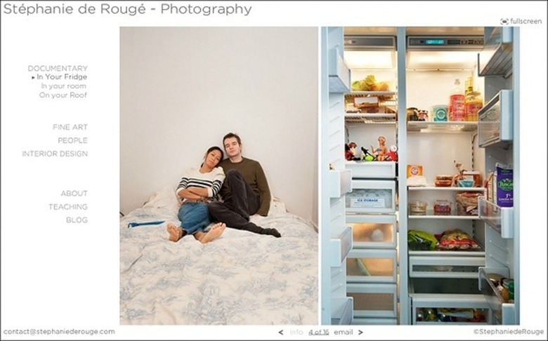 冷蔵庫の中身と、その持ち主をならべて見せている Stephonie de Rouge という写真家さん。