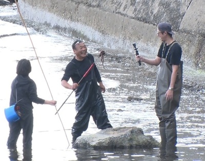 雨の中早朝から鳥を観察したり、胴長を着て川に石を探しに入ったり。